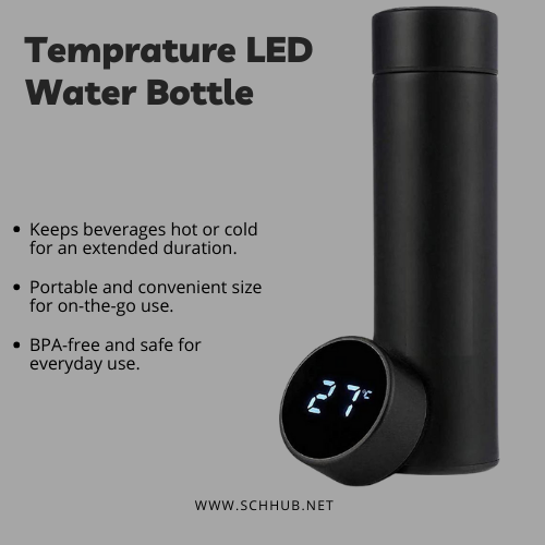 It’s a 500-ML water bottle with a digital LED display that shows the temperature.