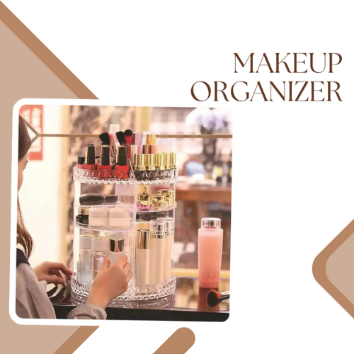 The sleek acrylic organizer features a 360° rotating design with multiple compartments and adjustable shelves, keeping makeup neatly organized and easily accessible.