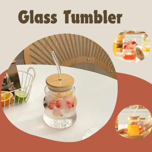 Glass Tumbler Wave shape with Straw 500ml