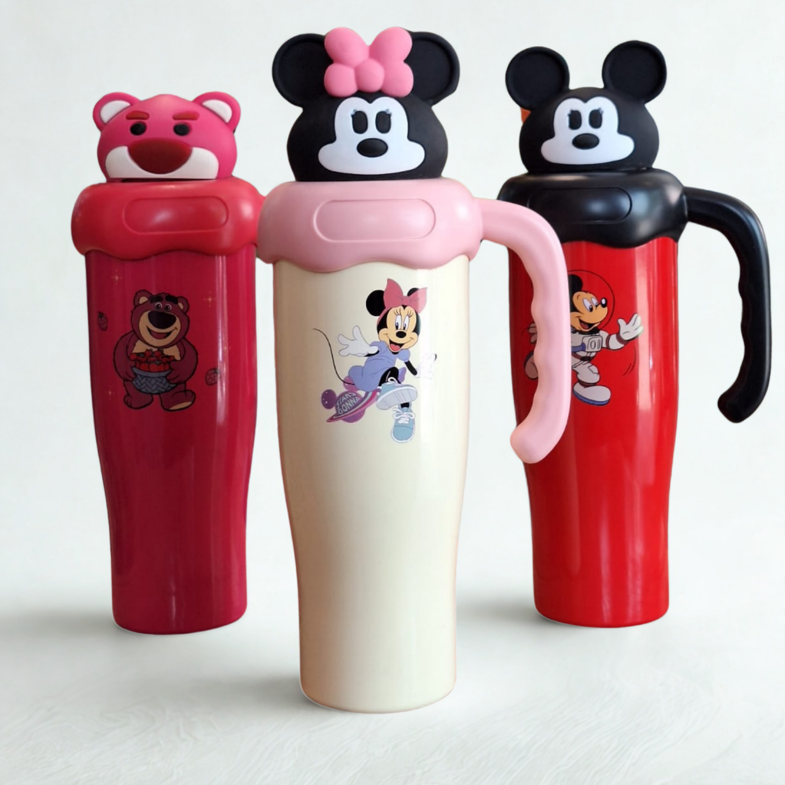 Make hydration fun with this adorable Disney Stainless Steel Tumbler (800ml) featuring 3D character lids of Mickey, Minnie, and Lotso! Perfect for kids, collectors, or Disney fans of all ages.