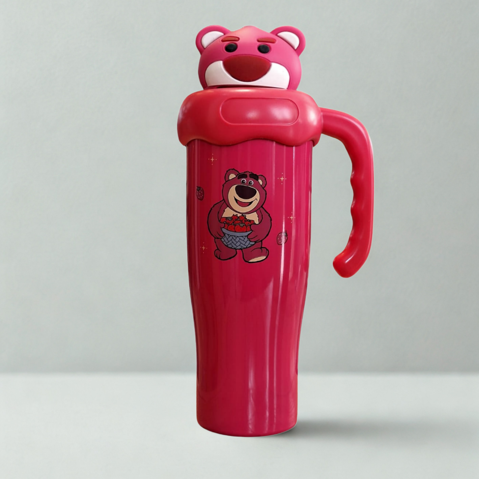 Cute 3D Character Lids – Mickey, Minnie & Lotso with straw-covering tops