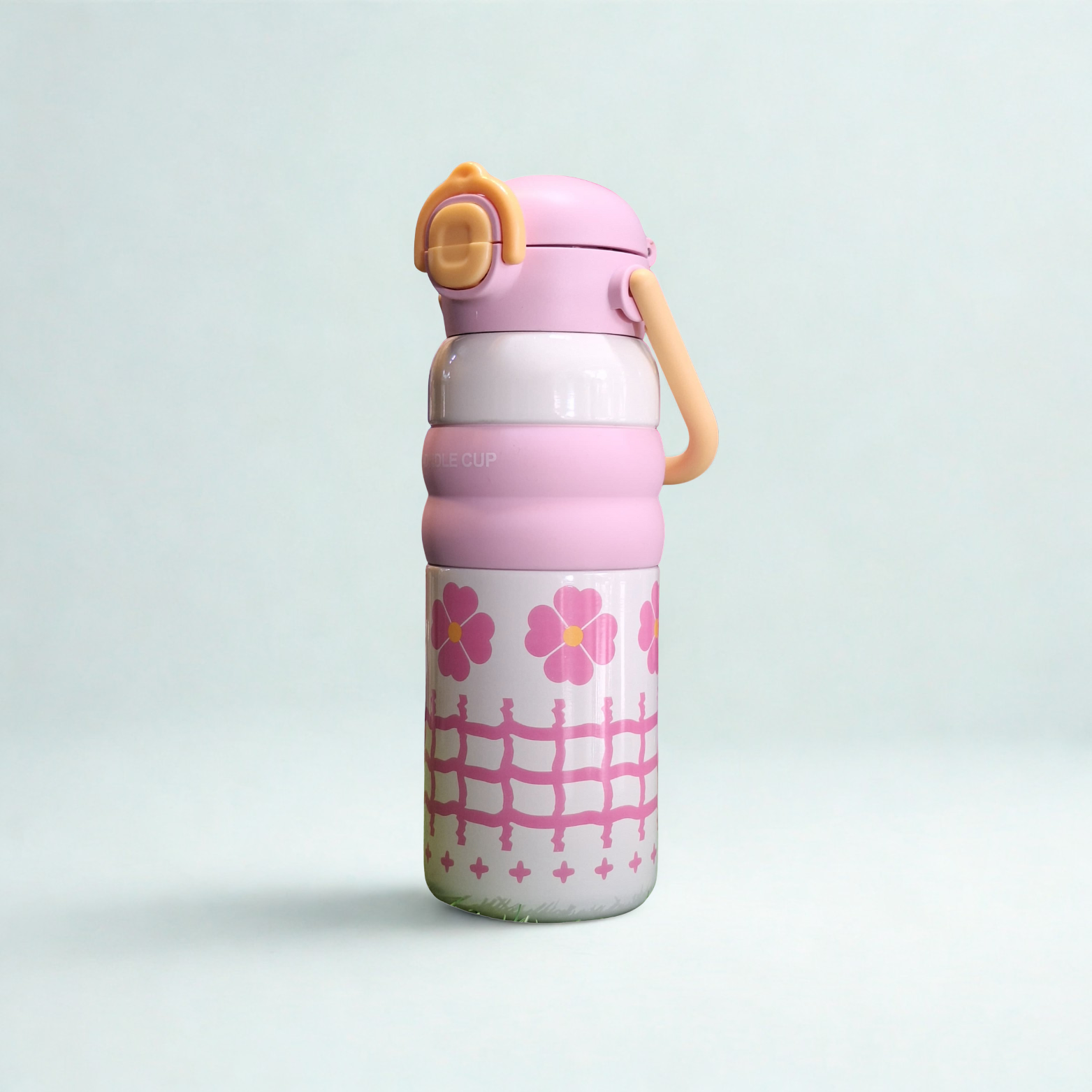 Design: Sport-Friendly with Built-in Straw + Cute Cartoon Flower Pattern