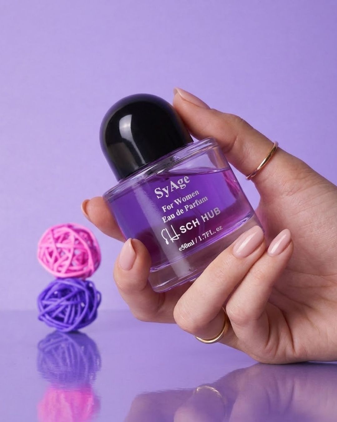 SyAge Perfume for Women combines the sweetness of blackberry, grapefruit, and pear, creating a bright start. This fruity opening flows into a floral heart of jasmine, lychee, and bluebell. White woods, soft musk, and refreshing coconut water form the warm base, making this scent uplifting and elegant.
