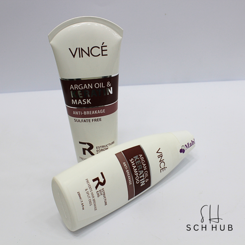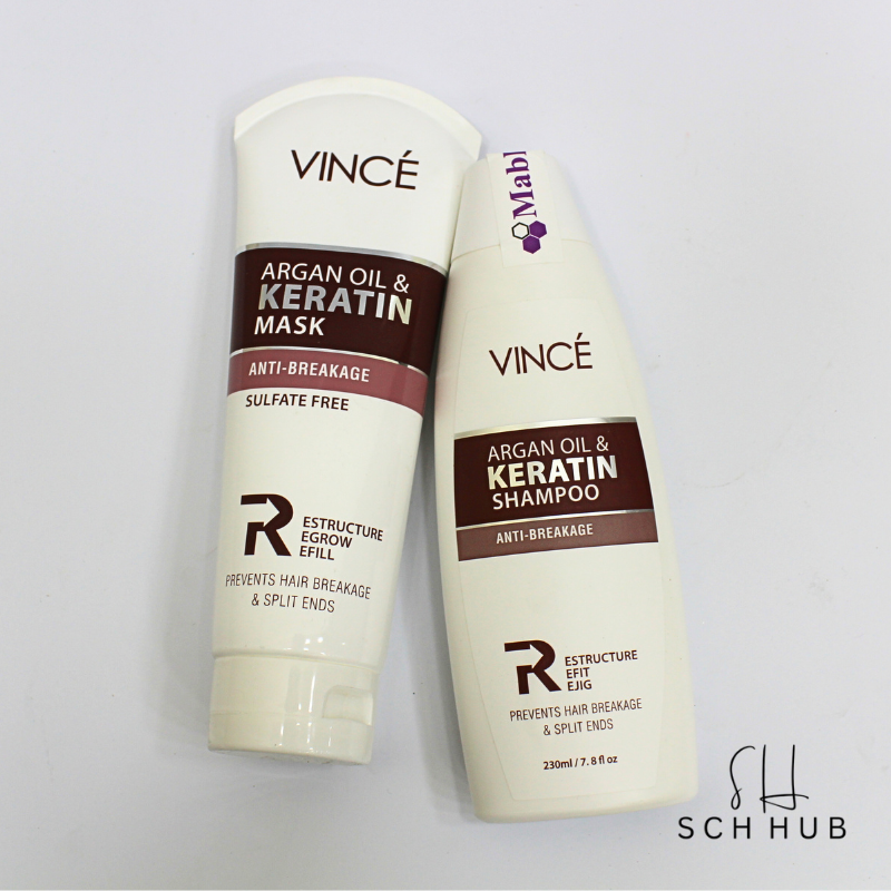 A hair care duo combining the nourishing benefits of argan oil in Vince Argan Mask and the strengthening properties of keratin in Keratin Shampoo for revitalized and repaired hair.