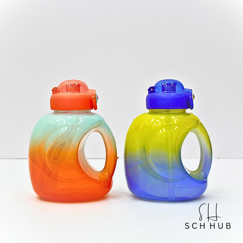 A water bottle with a handle and straw is a convenient bottle with a built-in handle and a straw for easy drinking on the go.